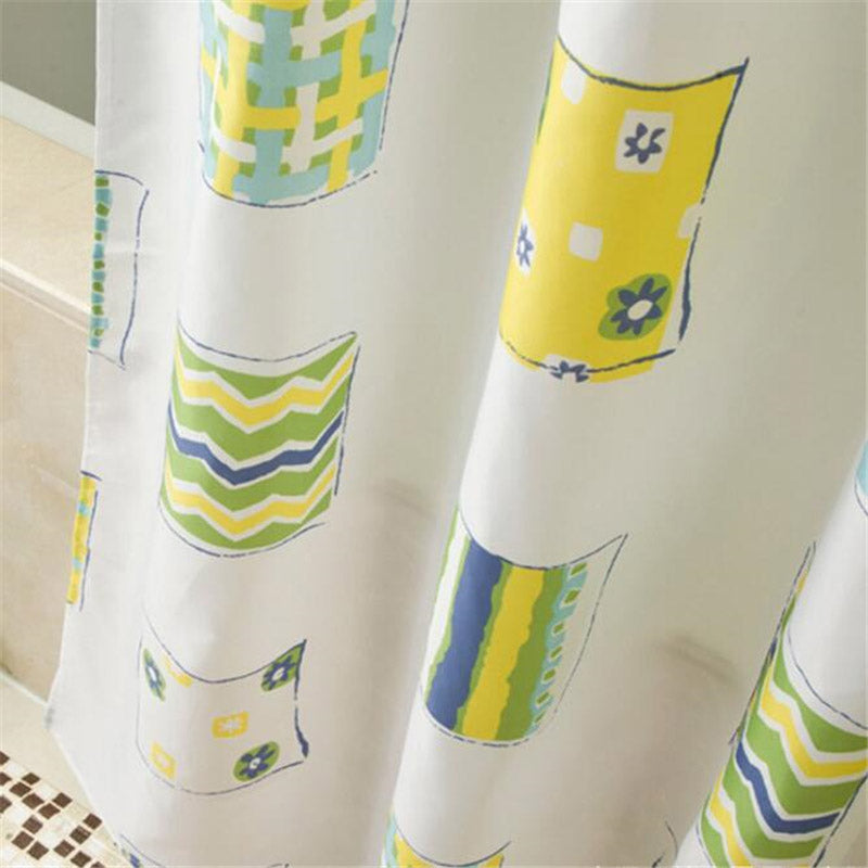 Är du trött på ett tråkigt och livlöst badrum? Vårt nya duschdraperi med abstrakt geometriskt mönster är precis vad du behöver för att ge rummet en omedelbar ansiktslyftning! Föreställ dig hur det ljusa vita tyget med de lekfulla mönstren i gult, grönt och blått kommer att lysa upp din morgonrutin. Det är inte bara ett praktiskt inslag, utan en konstnärlig detalj som speglar din personliga stil och skapar en inbjudande atmosfär. Låt detta duschdraperi bli startskottet för ett badrum du verkligen älskar att vara i!