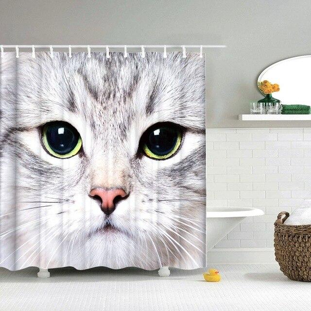 Ge Ditt Badrum Karaktär med Duschdraperi med Ansikte av Vit Katt