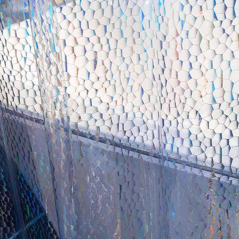 Vårt duschdraperi sticker ut från mängden med sin innovativa 3D-effekt. Mönstret, som påminner om små, oregelbundna mosaikbitar, skapar en fascinerande visuell textur som inte bara är vacker att se på, utan också ger en känsla av lyx. De inbyggda tyngderna i nederkanten säkerställer att duschdraperiet hänger rakt och fint, och förhindrar att det klistrar sig fast vid dig under duschen – en liten detalj som gör stor skillnad för din duschupplevelse.
