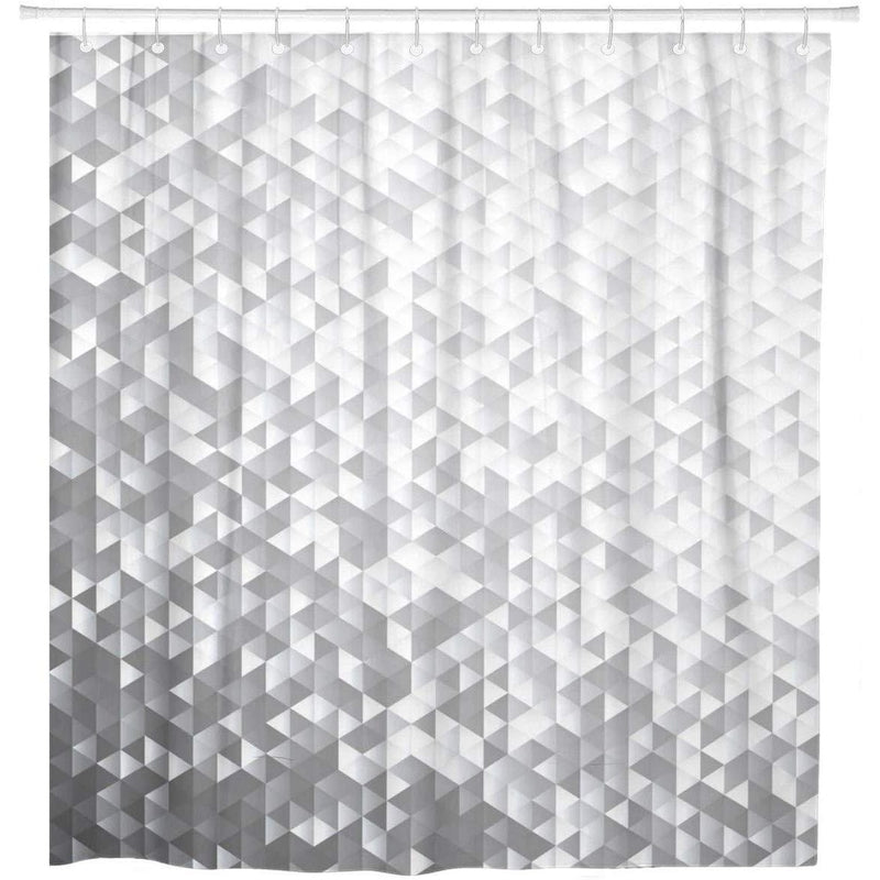 Ett geometriskt duschdraperi i silverfärger som passar alla stilar.