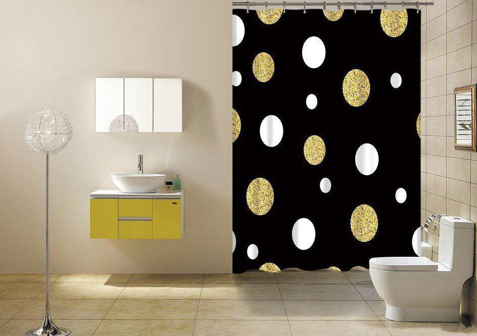 Un Svart Duschdraperi med Prickar i Glitter för ditt badrum