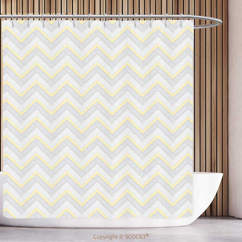 Skapa din drömbadrum med detta vitt duschdraperi med guldfärgat sicksackmönster